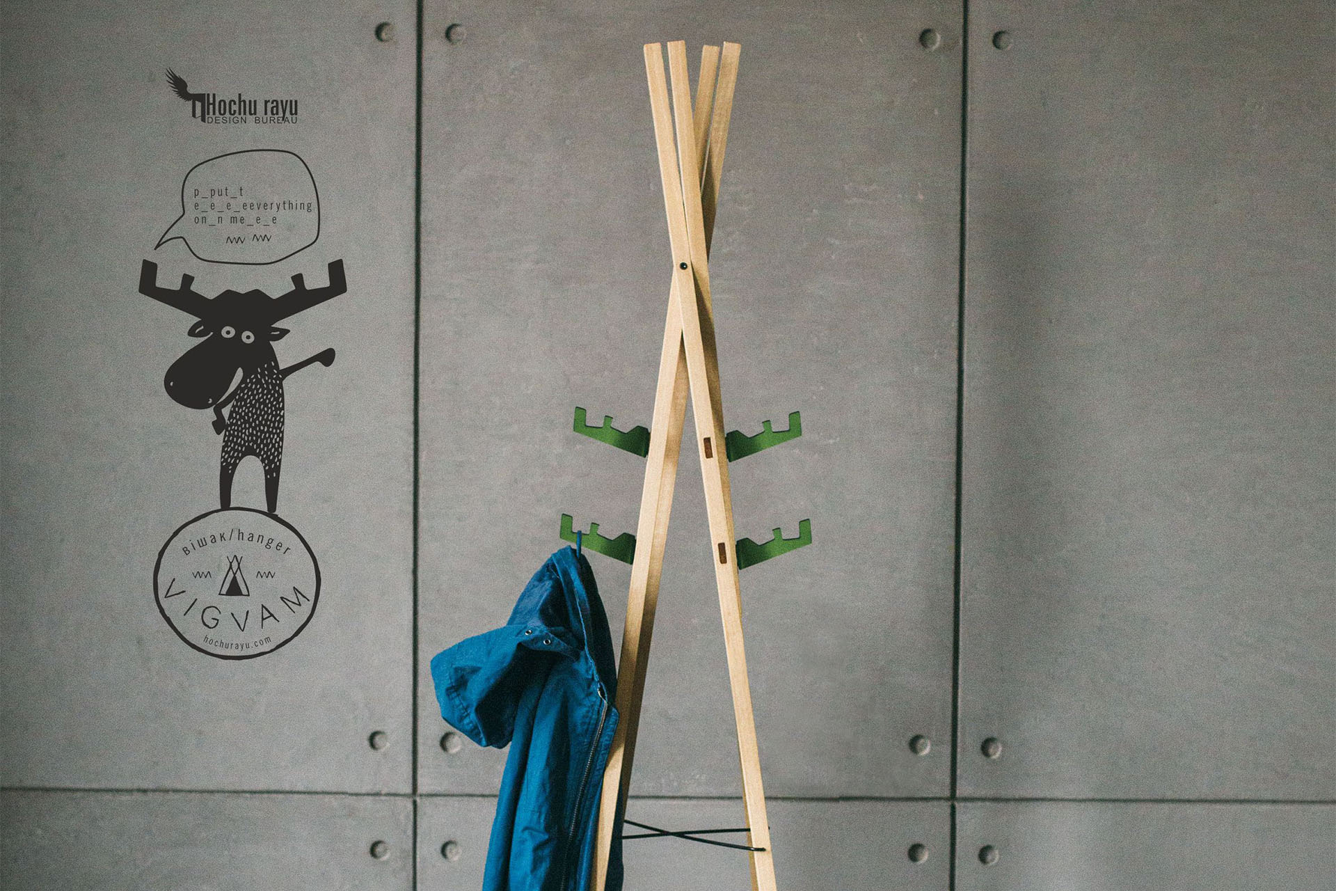 VIGVAM is a lightweight hanger, made in a form of typical vigvam construction with set of hooks, stylized as deer antlers. The item inspiration comes from a typical home construction of Indians and other nomadic tribes. Since most of these tribes were hunters we also added antlers as a symbol of deer. Deer antlers becomes a symbol of protection, welfare and guarding.