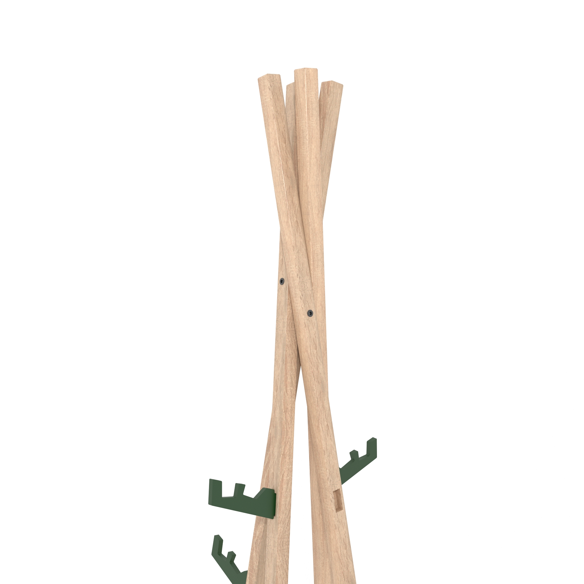 Type of material: wood veneer, available textures: American walnut or Canadian oak Hanger details: basis: 1 pcs; hooks : 6 green pcs.; fastening: 2 black pcs. Vigvam height: 2 m. Cardboard tube (D=8,5 cм h=2.04 м) with item logotype and brand information. Weight brutto: 4,1 kg
